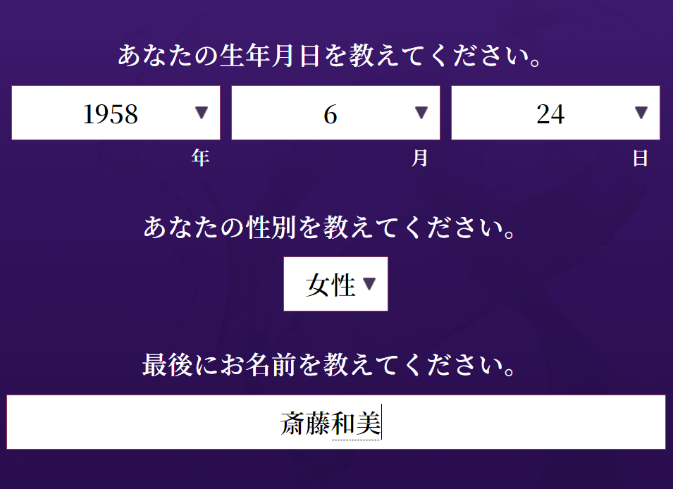 生年月日・性別・名前を送るだけです!