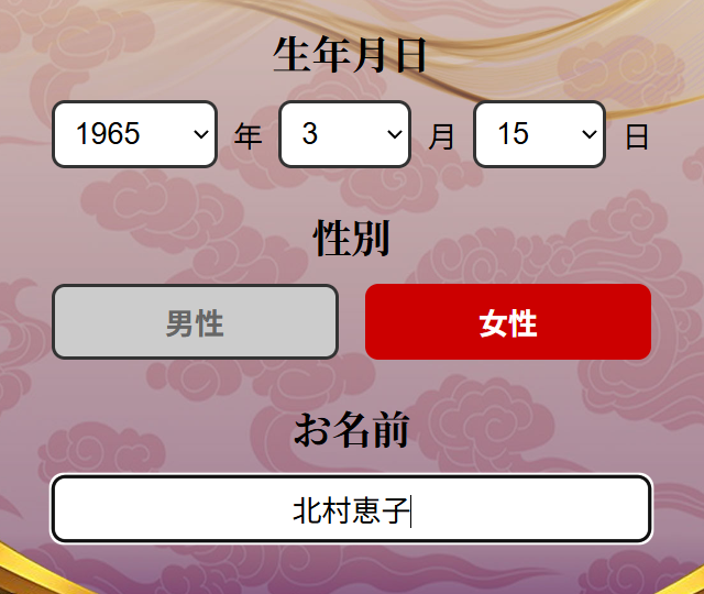 生年月日・性別・名前を送るだけです!